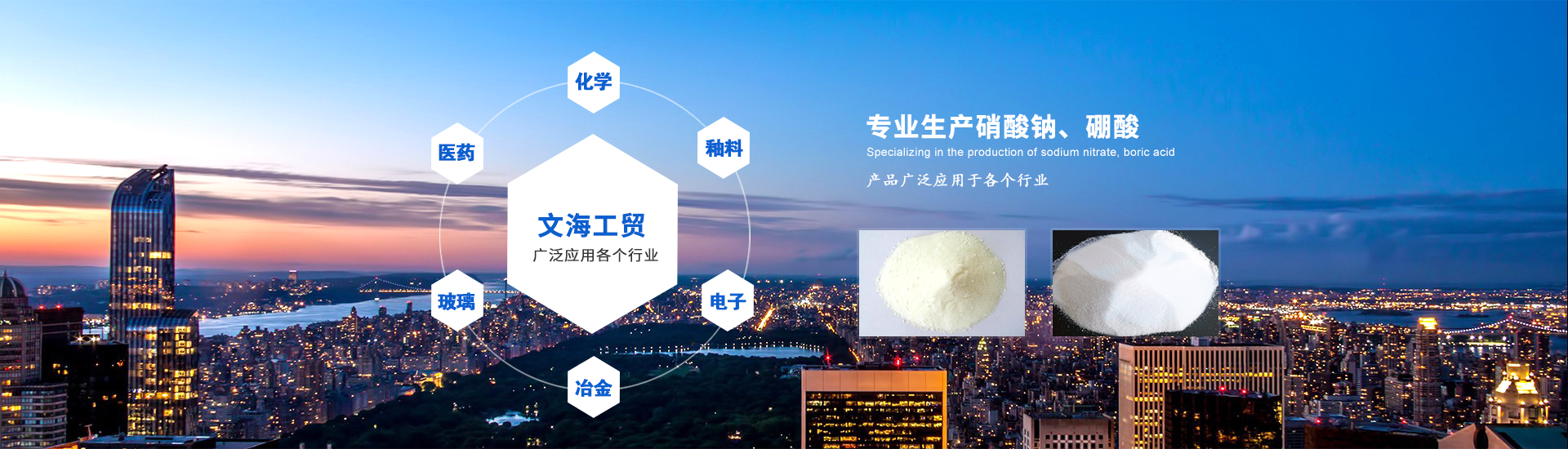 硝酸钠厂家:淄博文海工贸有限公司成立于2006年2月,位于山东省淄博市博山区。公司占地面积10000平方米,拥有职工60人,技术人员5人;本公司主业务是硝酸钠、硼酸、硼钙石,产品用途较为广泛,价格合理。